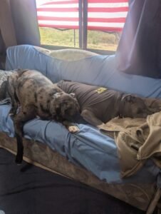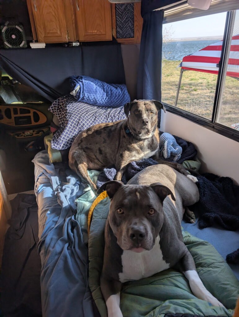 We got the dogs back to the RV, got them water, and let them chill out as we started working on breaking down camp. It was really nice out, so we wanted to get home and enjoy the rest of the day. We quickly got ready to leave, and when everything was done, we got the dogs up the RV steps and into the rig to get buckled in for the ride home.
