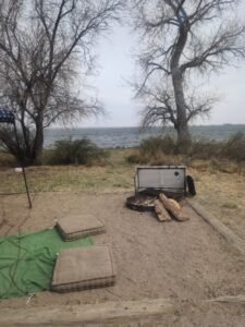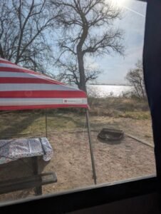 And a campfire? HA! There were somehow no fire restrictions in that area despite the high winds, but there was no way we were lighting anything out there. We spent our first night camping locked inside the RV watching our popup fight the wind and waiting to see when the cover would finally rip against the force of gusts that had to be 30+ mph – maybe even more.